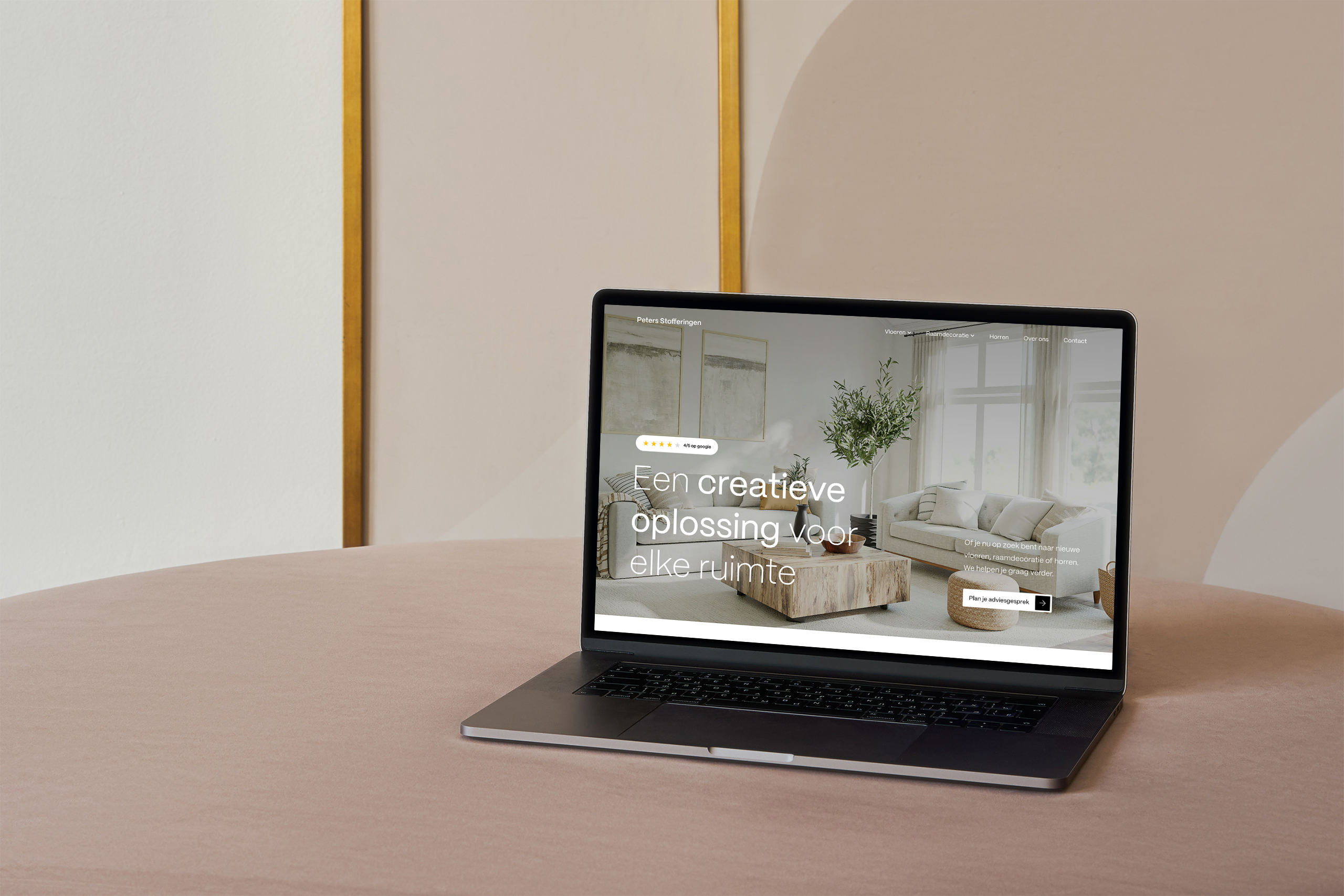 - Een volledig custom design, passend bij het ambacht en de uitstraling van Peters Stofferingen